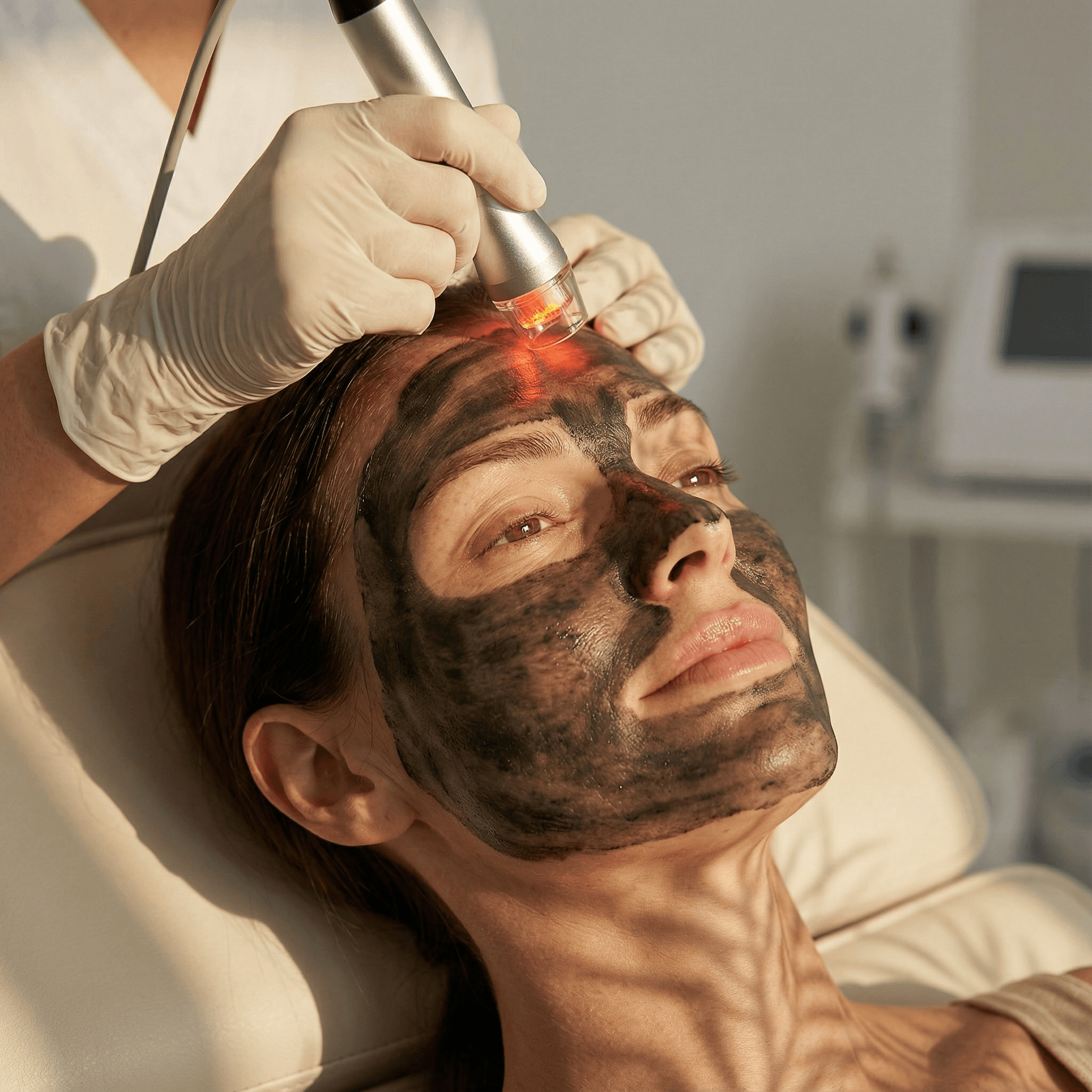 Im zweiten Schritt wird die Haut mit einem Laser behandelt, der die Carbonpartikel gezielt erhitzt und zerstört. Dabei werden Unreinheiten entfernt, die Poren verfeinert und die Haut sanft stimuliert.