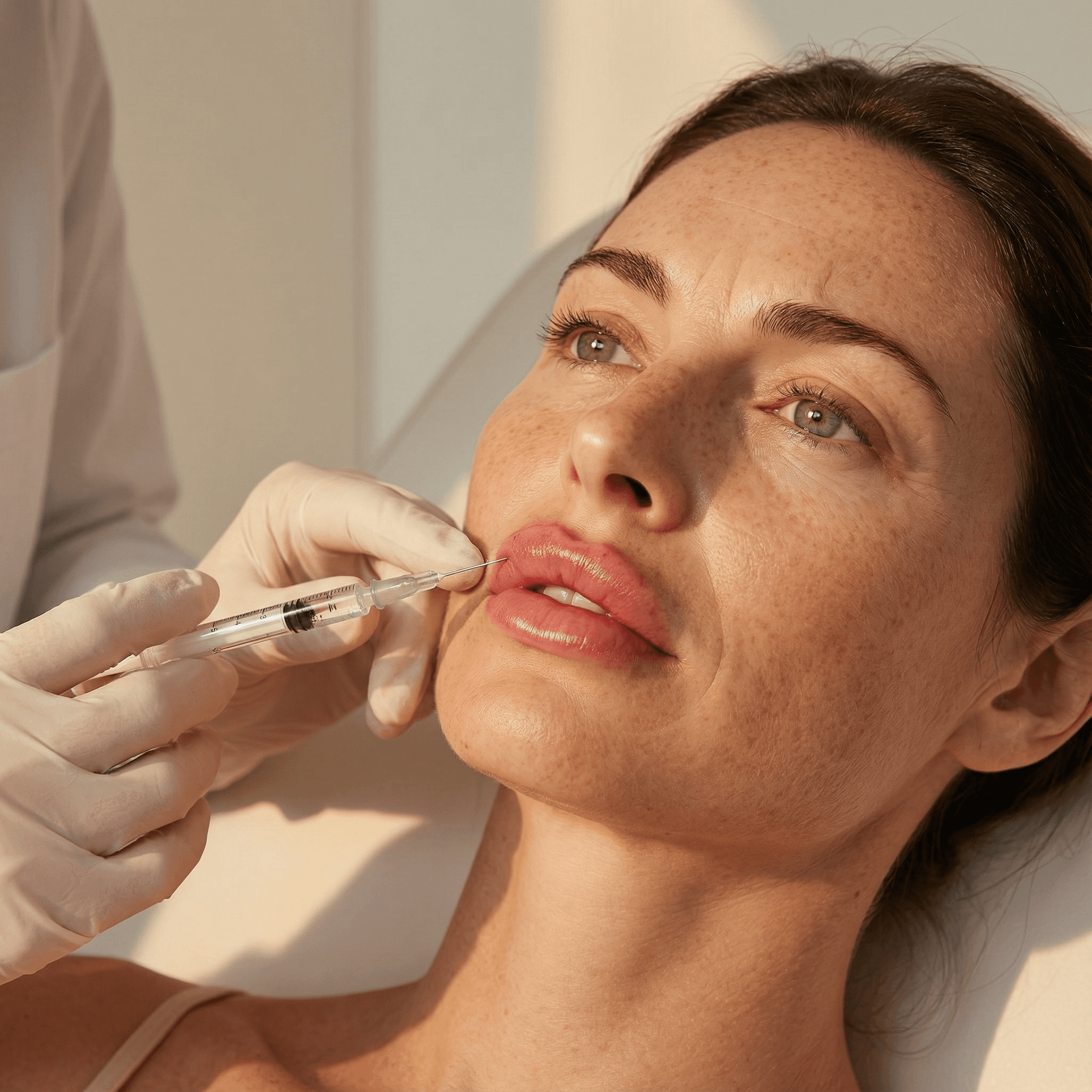 z. B. Lippenunterspritzung, Wangen, Kinn und weitere Gesichtszonen